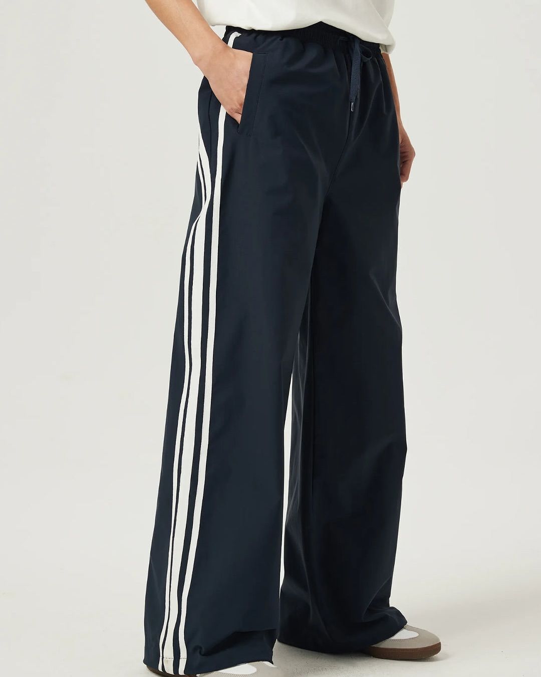Design: Minimalist, functional, and sleek. Features zippered pockets, reflective detailing, and a soft elastic waistband with an adjustable drawstring for a tailored fit.